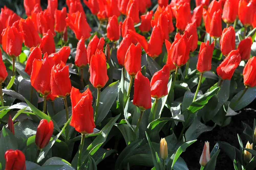 Поливать тюльпаны Ред Эмперор необходимо регулярно, особенно в период активного роста и цветения. Излишняя влага может привести к загниванию луковиц, поэтому важно не допускать переувлажнения почвы.