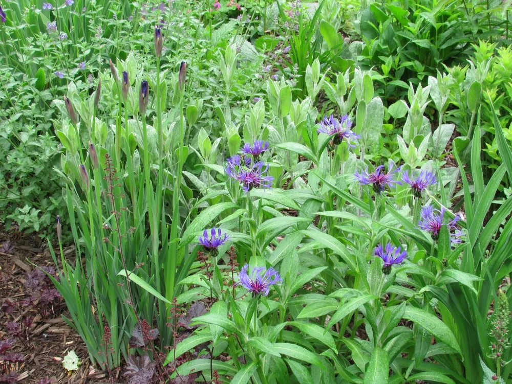 Василек бордюрная представляет собой компактный кустик высотой до 30-40 см и шириной около 25-30 см. Он отличается густой листвой темно-зеленого цвета и обильным цветением, которое продолжается с июня до первых заморозков. Цветовая гамма варьируется от насыщенного пурпурного до бордового оттенка, создавая яркий акцент в саду. Сорт устойчив к жаре и засухе, что делает его идеальным для регионов с теплым климатом.