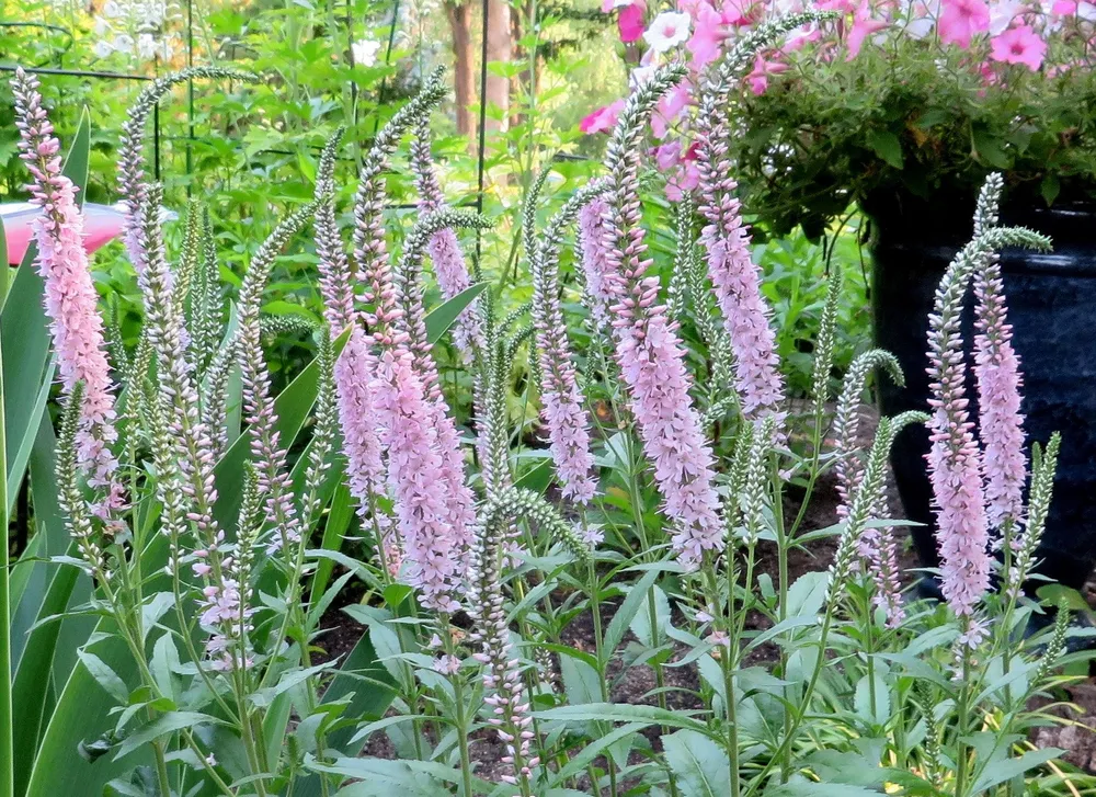 Вероника ‘Пинк Дамаск’ отличается от других сортов более яркой розоватой окраской цветков.
