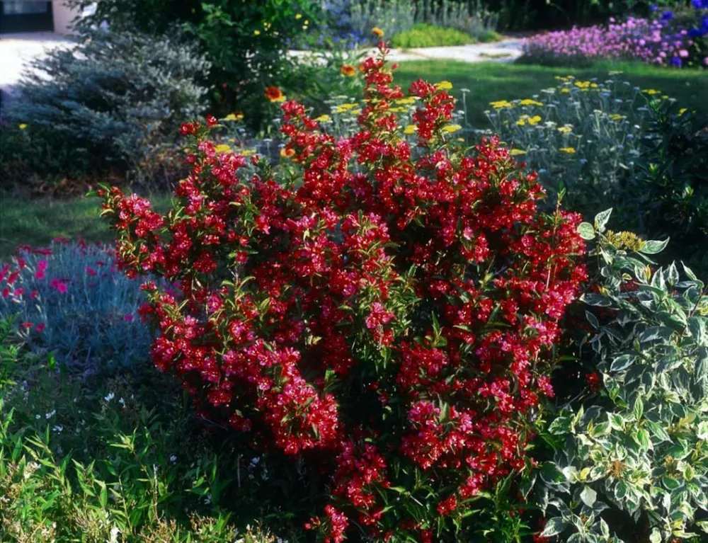 Вейгела Люцефер отличается от многих других сортов яркими, насыщенными цветами с красной каймой. Кроме того, этот сорт более устойчив к заболеваниям и засухе.