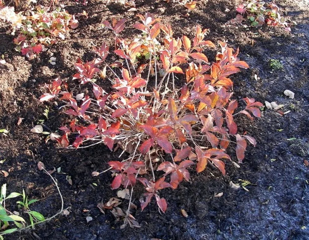 - Мульчирование: После посадки куста рекомендуется замульчировать почву вокруг корней слоем органического материала (например, древесной щепы) для сохранения влаги и подавления роста сорняков.