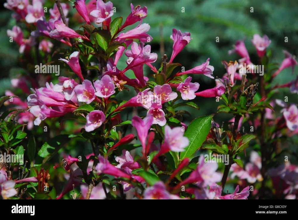 Вейгела (Weigela) — это декоративный кустарник, который покорил сердца многих садоводов своей красотой и неприхотливостью. Родом из Восточной Азии, этот представитель семейства жимолостных насчитывает более 15 видов и огромное количество гибридных сортов. Вейгела славится своими густыми, лиственными кронами и обильным цветением, которое наступает в середине весны и продолжается до конца лета. Цветки могут быть самыми разнообразными: от нежно-розовых и кремовых до ярких красных и оранжевых оттенков, а некоторые сорта даже отличаются двуцветным окрасом лепестков. Благодаря своей неприхотливости и способности расти в самых разных условиях, вейгела стала любимцем садоводов как опытных, так и начинающих.