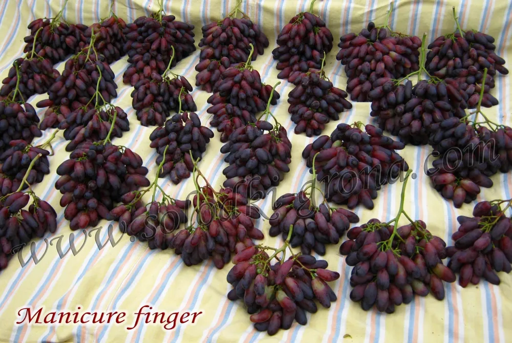 Это столовый сорт винограда, который ценится за его сладкие и ароматные ягоды. Плод Маникюр Фингер имеет насыщенный темно-синий цвет с едва заметным пурпурным оттенком. Вкус ягод отличается сладостью с небольшой кислинкой, что создает гармоничное сочетание. Выращивается данный сорт винограда для употребления в свежем виде, а также для изготовления соков и вин.