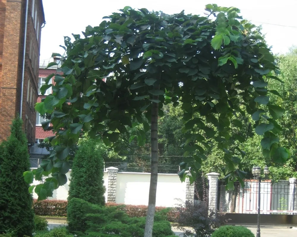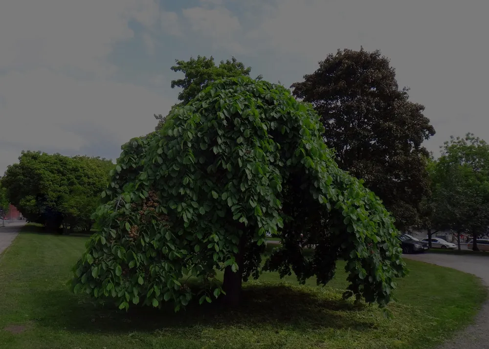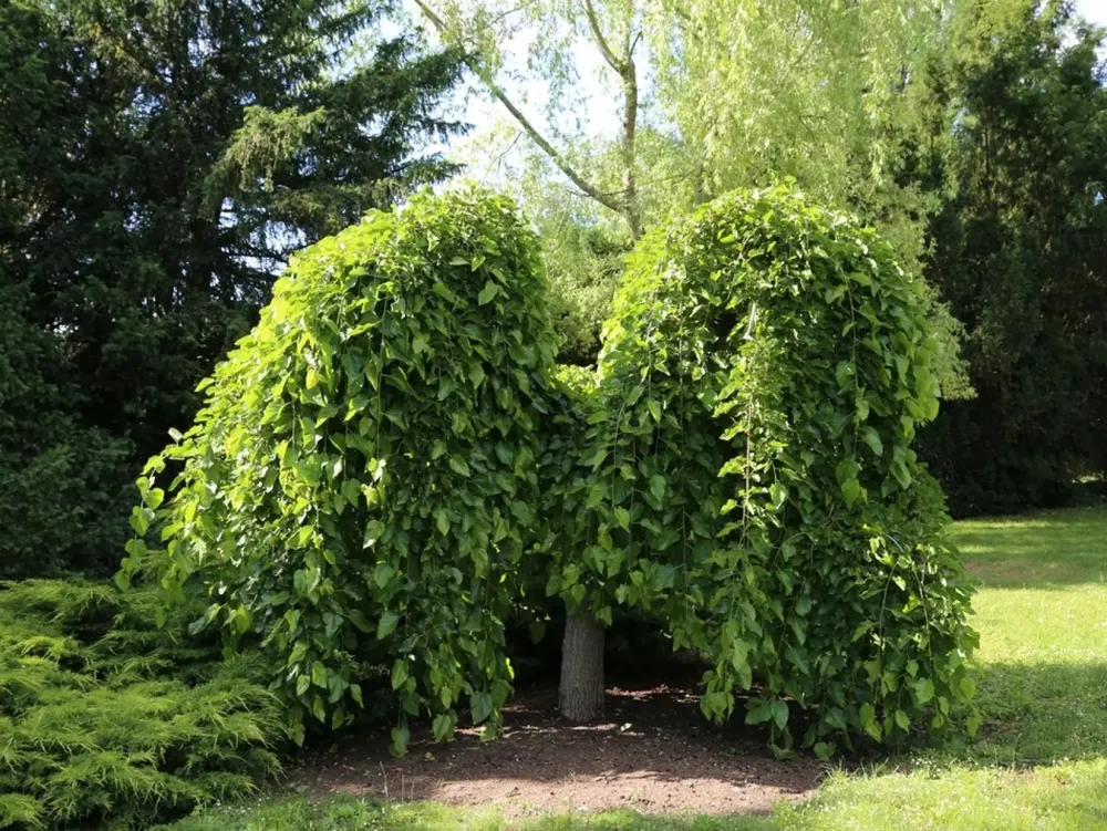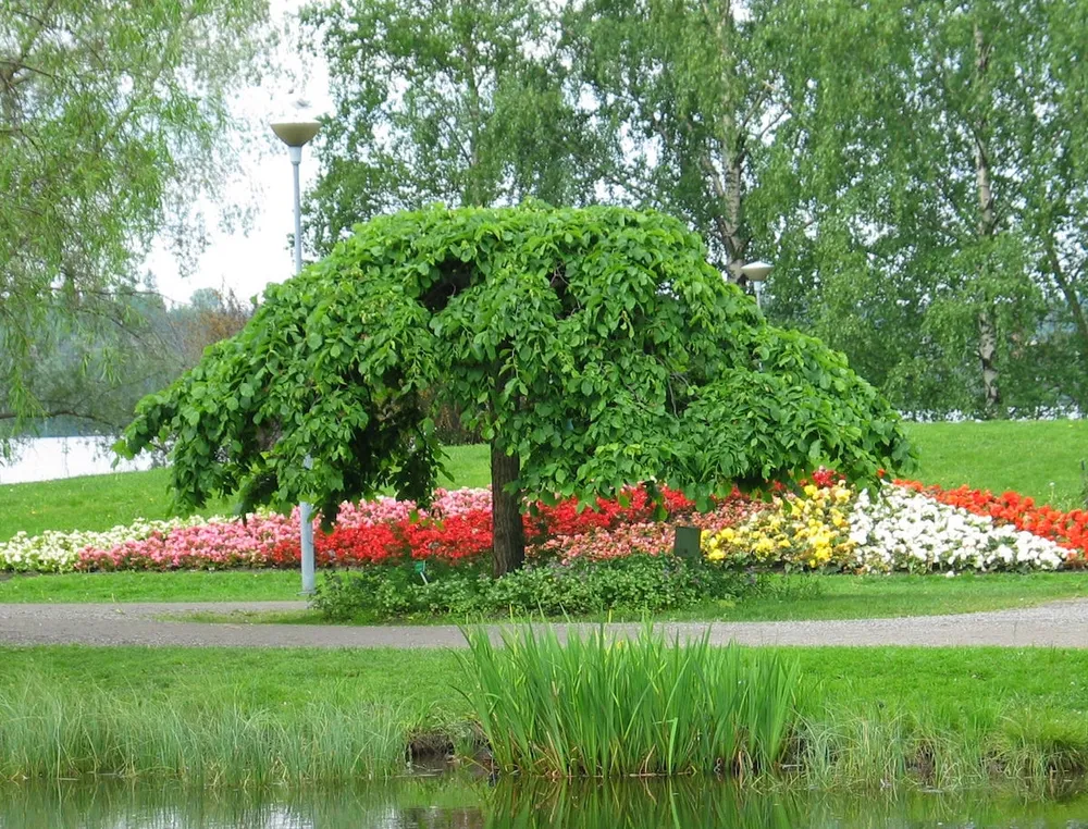 Вяз шершавый Пендула отличается от других сортов виза своей необычной формой кроны, свисающими ветвями, напоминающими веер.