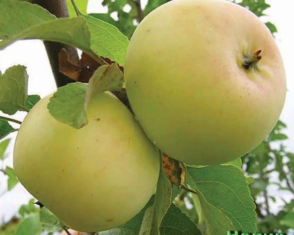 Золотой Ранет – это дерево средней величины с густой кроной яйцевидной формы. Плоды средних размеров, имеют светло-зеленую окраску с легким румянцем на солнечной стороне, а мякоть характеризуется кремовым цветом и превосходным вкусом.