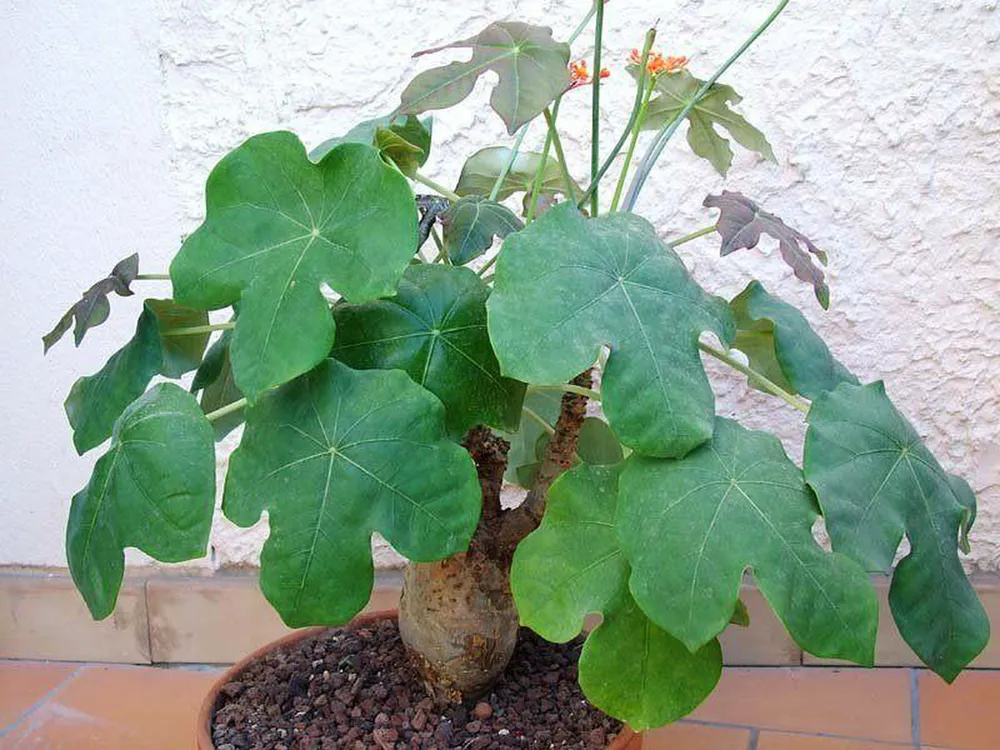 Ятрофа (Jatropha) – это род растений семейства молочайных, насчитывающий около 170 видов. Родина ятрофы – тропические и субтропические регионы Африки, Азии и Америки. Благодаря своей неприхотливости и способности расти на бедных почвах, ятрофа получила распространение во многих странах мира. В последнее время она особенно привлекает внимание как источник биодизеля, так как ее семена содержат до 40% масла, которое можно перерабатывать в топливо. Некоторые виды ятрофы культивируются как декоративные растения благодаря своей яркой и разнообразной листве. Например, Jatropha integerrima (ятрофа цельная), известная также как жар-диффузор, привлекает внимание своими крупными листьями в форме сердца с красной каймой и яркими цветами, похожими на колокольчики.