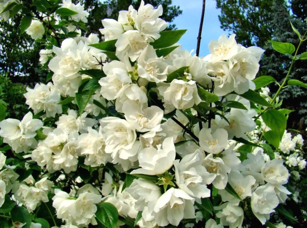 Его изящные белые цветы с розоватыми отблесками собраны в густые соцветия, украшая сад пышным благоуханием. Букет Бланш – результат кропотливой селекции, направленной на создание жасмина, который легко культивируется даже в условиях ограниченного пространства. Сорт отличается высокой декоративностью и стойким ароматом, который наполнит ваш дом или сад нежным весенним запахом.