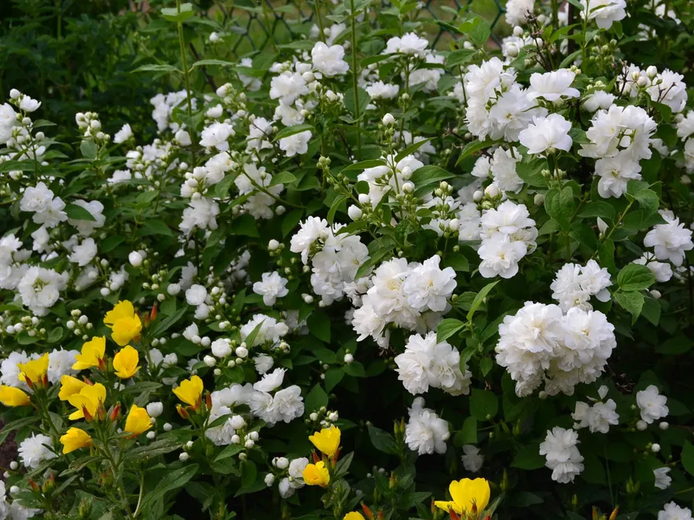 Жасмин Миннесота Сноуфлейк предпочитает солнечные места, но может хорошо развиваться и цвести в полутени.